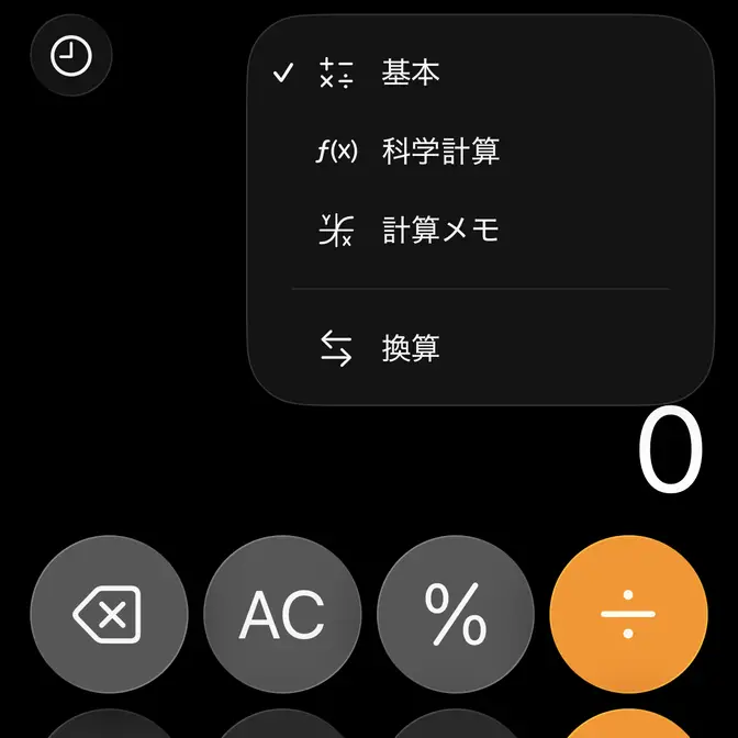 iPhoneにプリインストールされている計算機アプリは、一般的な[電卓]の他にもルート/円周率/累乗/階乗/三角関数/対数など【関数電卓】としても使うことができます。以前は横にすることで使えましたが、現在は切り替えて使うようになりました。