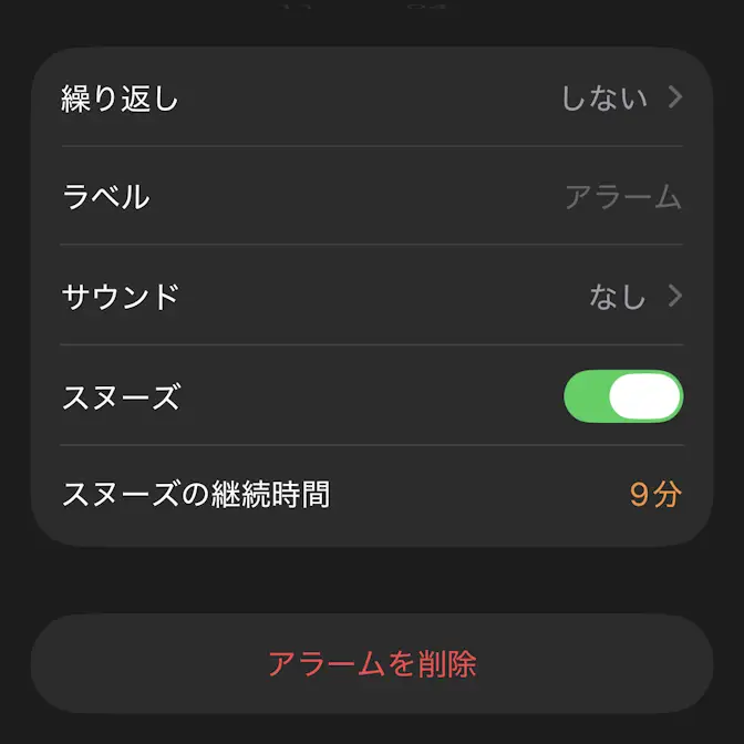最後に<をタップしてアラームを追加/アラームを編集まで戻り、