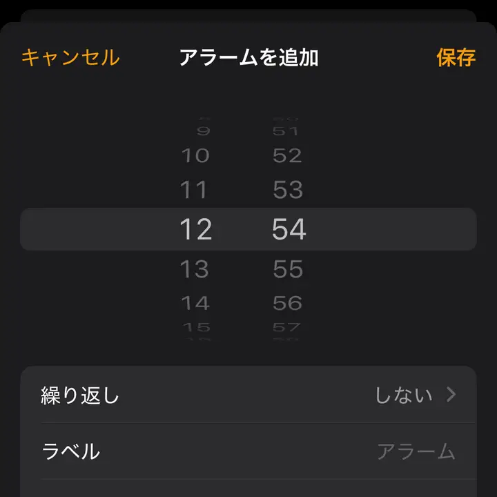 iPhone→時計アプリ→アラームiPhone→時計アプリ→アラーム→アラームを追加