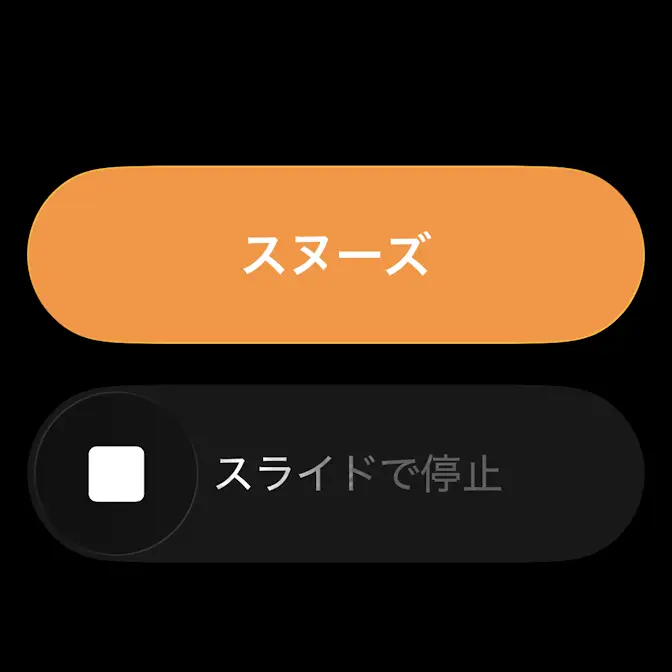 全画面で通知されるので、下のスヌーズをタップするかスライドして停止をタップしたまま右にスワイプします。