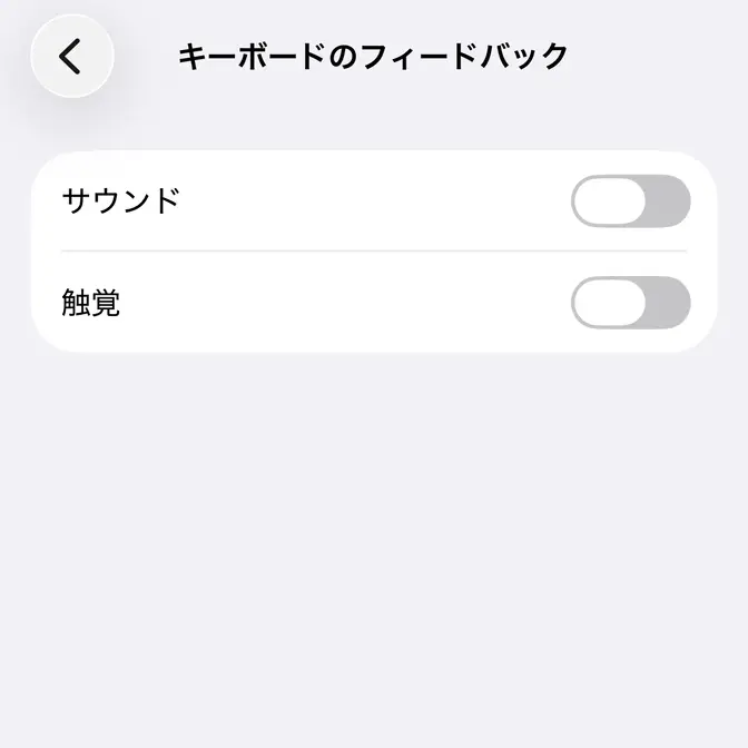 キーボードのフィードバックよりサウンドや触覚のオン/オフを切り替えます(画像はオフの状態)。