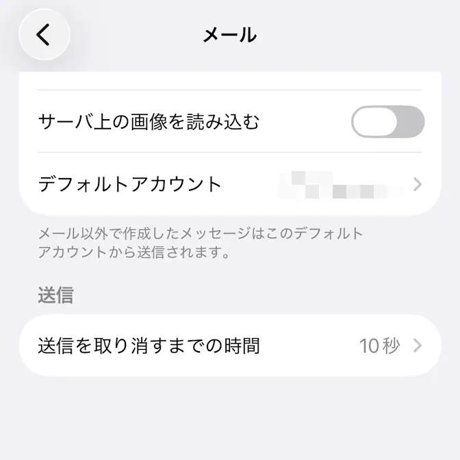 メールのデフォルトアカウントより対象のアカウントをタップして選択します。