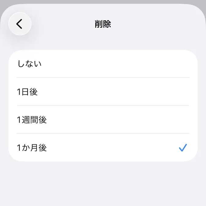 詳細の削除より1日後/1週間後/1か月後より選択します。