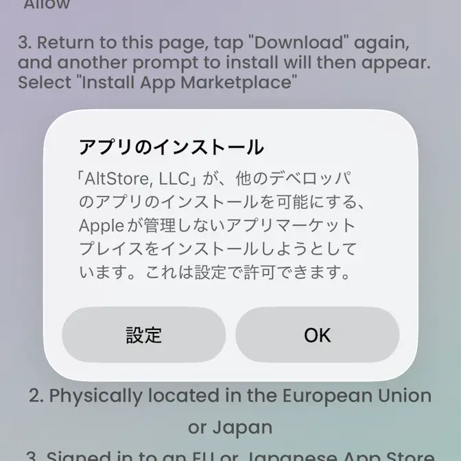 iPhoneにアプリをダウンロード&インストールするにはApp Storeを使うのが一般的ですが、AltStoreなど代替の【アプリマーケットプレイス】を手動でインストールすれば、それ以外のアプリもダウンロード&インストールできます。
