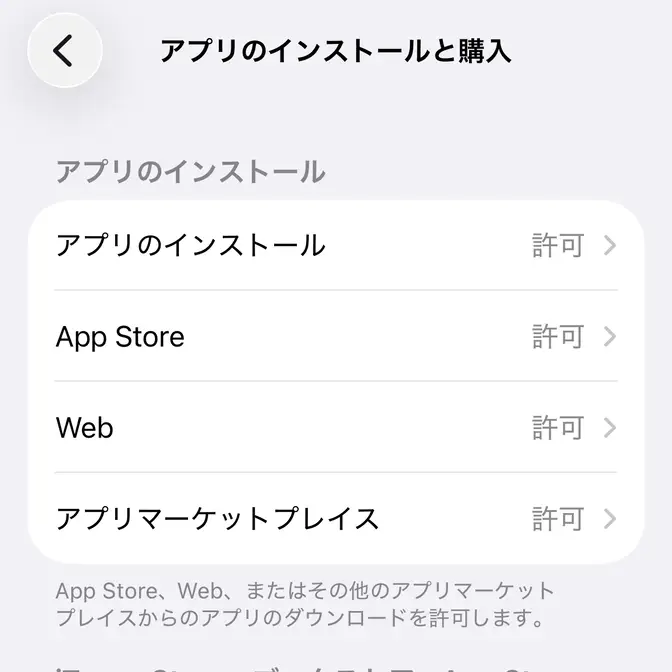 設定のアプリのインストールを管理より許可をタップします。
