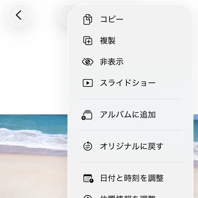 写真アプリの対象の画像よりをタップします。
