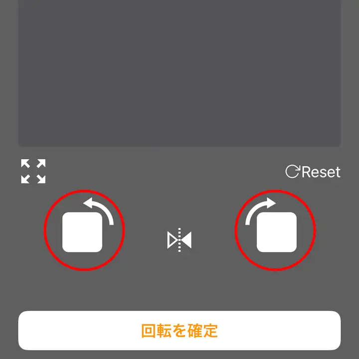 アプリより左に90°回転/右に90°回転をタップして回転してから回転を確定をタップします。