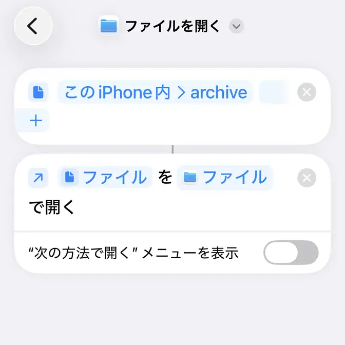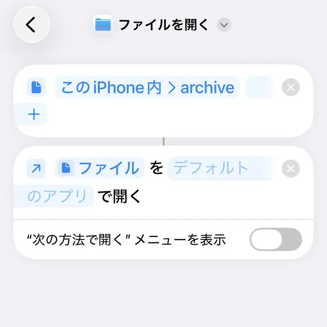 “アクションを検索”よりファイルを開くを選択しデフォルトのアプリをタップします。