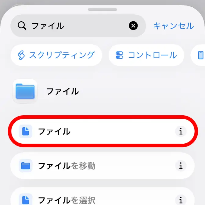 “アクションを検索”よりファイルを選択しファイルをタップします。
