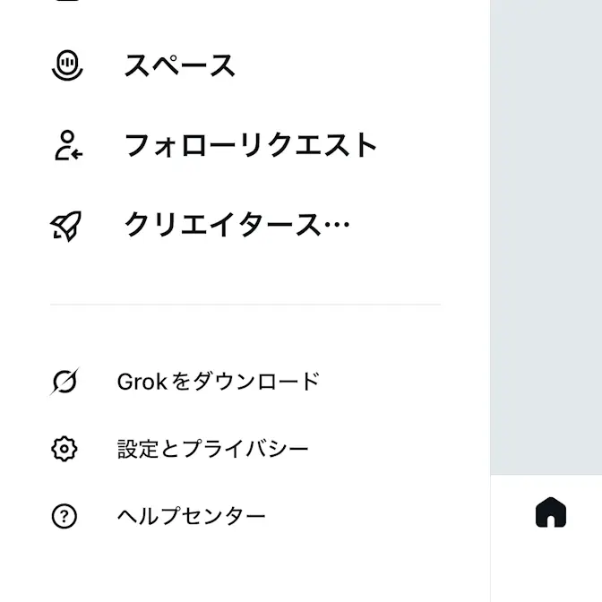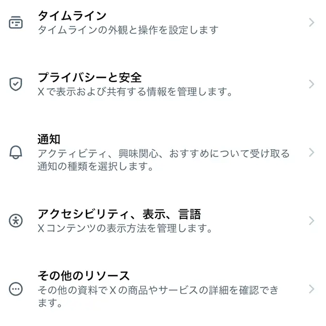 X(Twitter)アプリの自分のアイコンより設定とプライバシーをタップします。