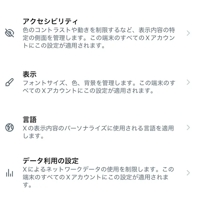 設定のアクセシビリティ、表示、言語よりデータ利用の設定をタップします。
