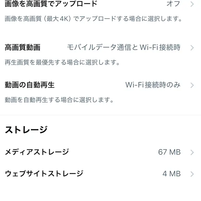 X(Twitter)アプリの「動作が遅い(重い)」「挙動がおかしい」と言った場合、キャッシュを削除すると改善することがあります。iPhoneではアプリの設定より【メディアストレージを削除】【ウェブページストレージを削除】ができます。