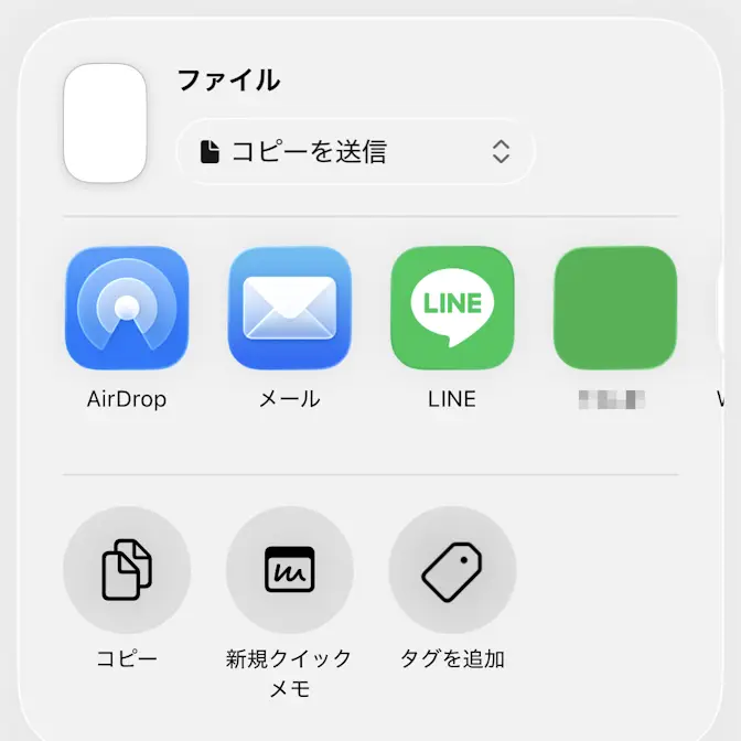 対象のファイルを長押しし共有をタップします。