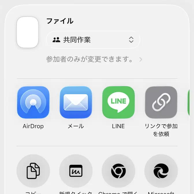 共同作業よりAirDrop/メール…などをタップして送信します。