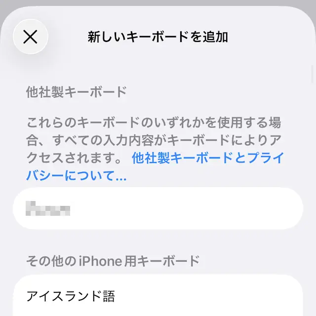 キーボードの新しいキーボードを追加より他社製キーボード>対象のキーボードをタップします。