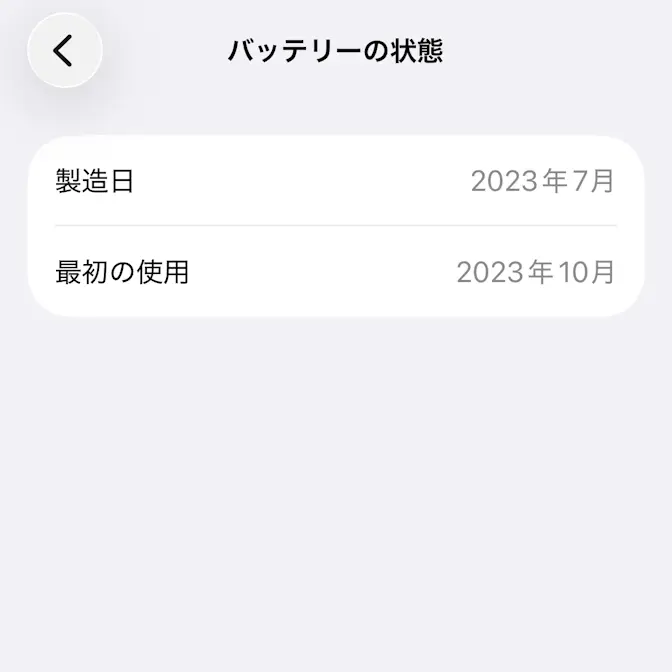 このような場合、iPhoneでは本体の設定でバッテリーを最初に使用した月である最初の使用を表示できるので、これを流用して「iPhoneが使用された期間」を確認することができます。