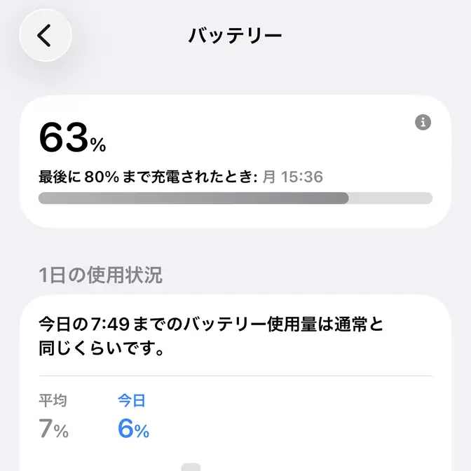 バッテリーの使用状況を表示するやり方は以上です。