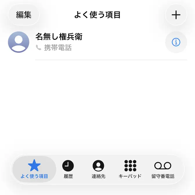 iPhoneでは連絡先をよく使う項目に追加することで、電話アプリに五十音順から外して表示されるようになります。