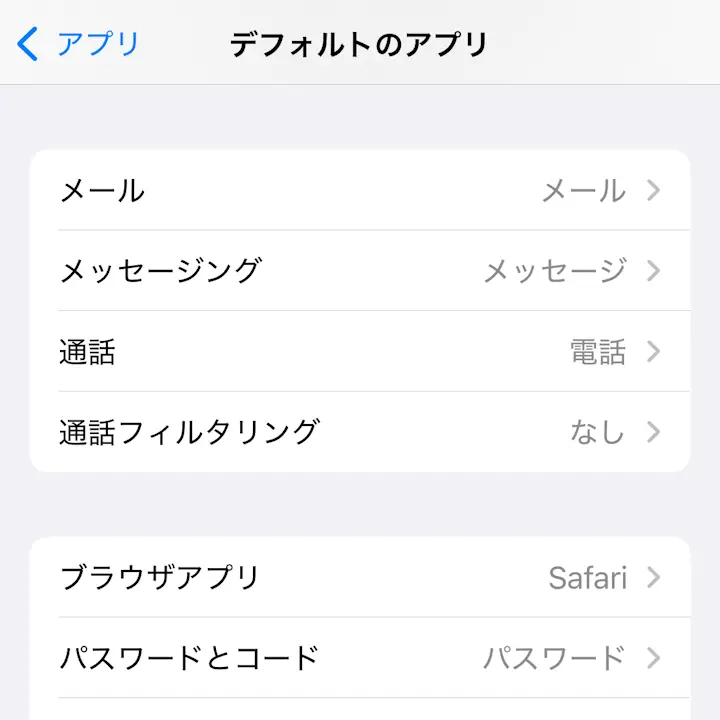 iPhone→設定→アプリ→デフォルトアプリ