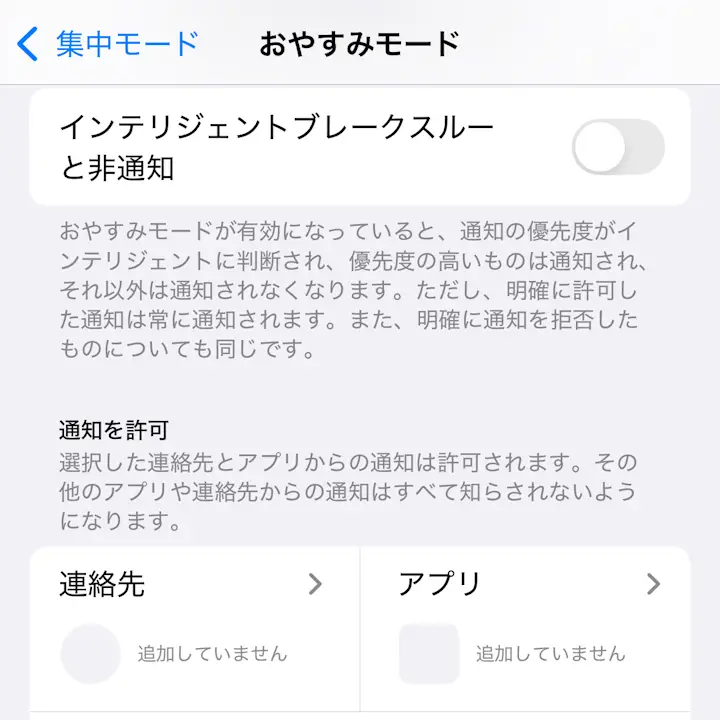 インテリジェントブレークスルーと非通知をオンにすると通知する/通知しないを自動的に判断するようになるので、よくわからなければオフにしておくのが良いでしょう。