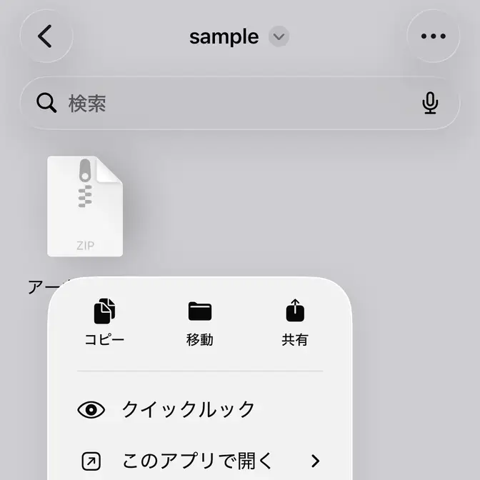 アプリより対象の圧縮ファイルを長押ししメニューを表示します。