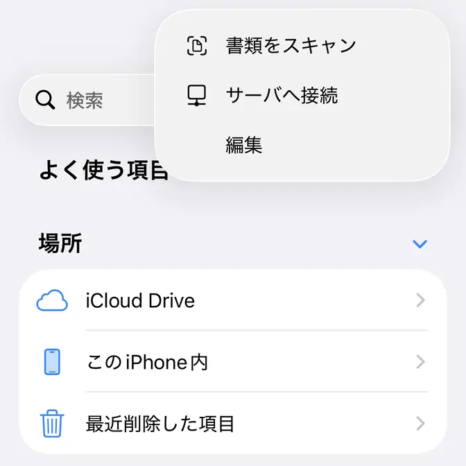 ファイルアプリのブラウズより…>サーバへ接続をタップします。