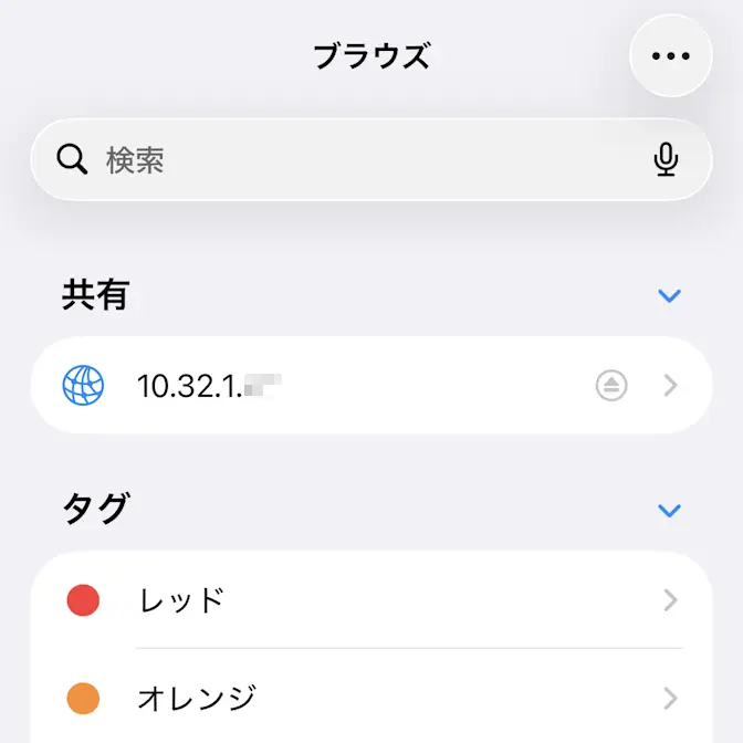 ファイルアプリの“ブラウズ”より共有に表示されているの対象サーバ> ⏏ をタップします。