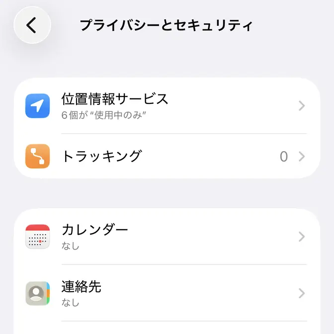 iPhone→設定iPhone→設定→プライバシーとセキュリティ