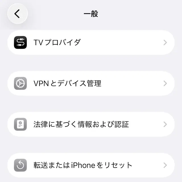 設定の一般より法律に基づく情報および認証をタップします。