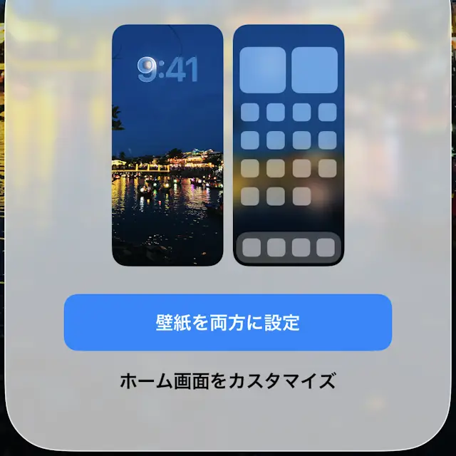 iPhone→ロック画面→コレクション→新規を追加→写真→自然光iPhone→ロック画面→コレクション→新規を追加→壁紙を両方に設定