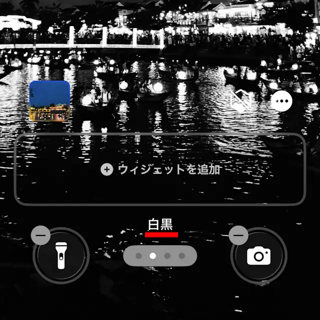 ロック画面もモノクロにする場合、左右にスワイプして白黒を選択します。