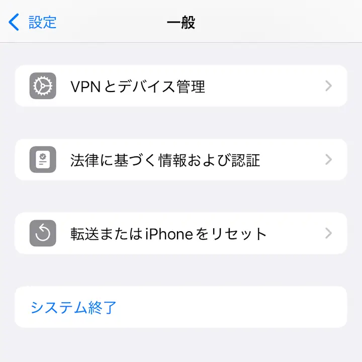 iPhone→設定→一般→転送またはiPhoneをリセットiPhone→設定→一般→転送またはiPhoneをリセット→リセット