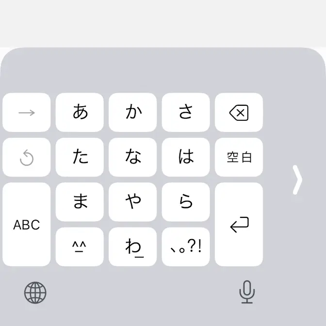 iPhoneにプリインストールされているIMEアプリは、デフォルトでは左右の端まで画面いっぱいに表示されるので、これを左側/右側に寄せて小さくすることができる機能を片手用キーボードと呼びます。