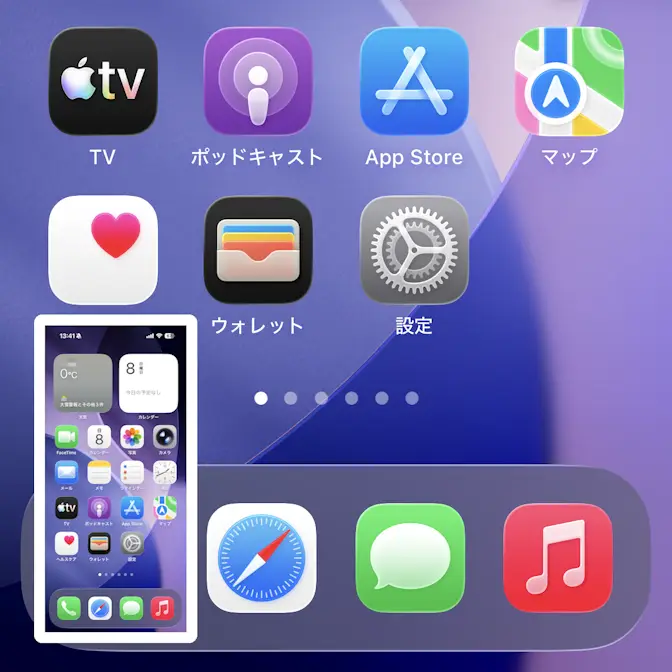 対象の画面よりスクリーンショットを撮りフルスクリーンプレビューを表示します。