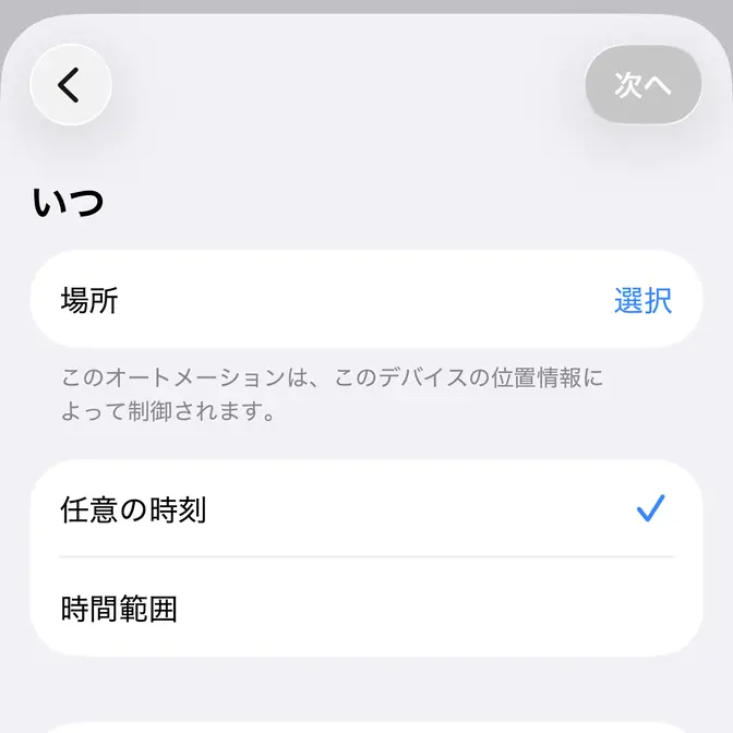 場所の選択より任意の場所を検索・選択し次へをタップします。