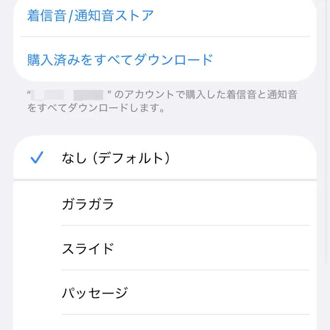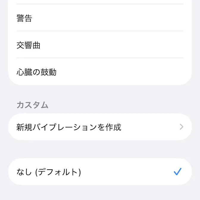 続けて、サウンドの触覚よりなしを選択すると振動なしになります。