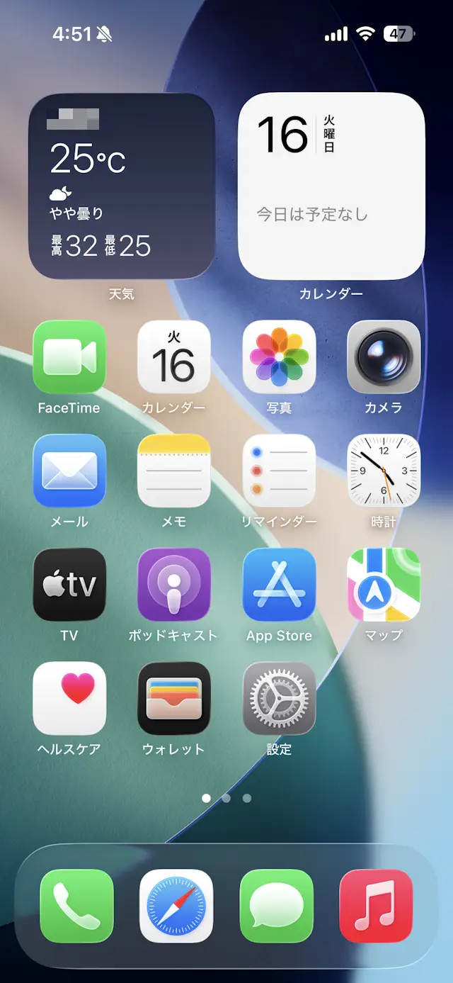 iOS 26にアップデートしたiPhoneでは新しいデザインのLiquid Glassによって所々で隠れた部分が透過するようになっていますが、これにより「見えにくい」などと言う場合には【透明度を下げる】ことで透過しないようにできます。