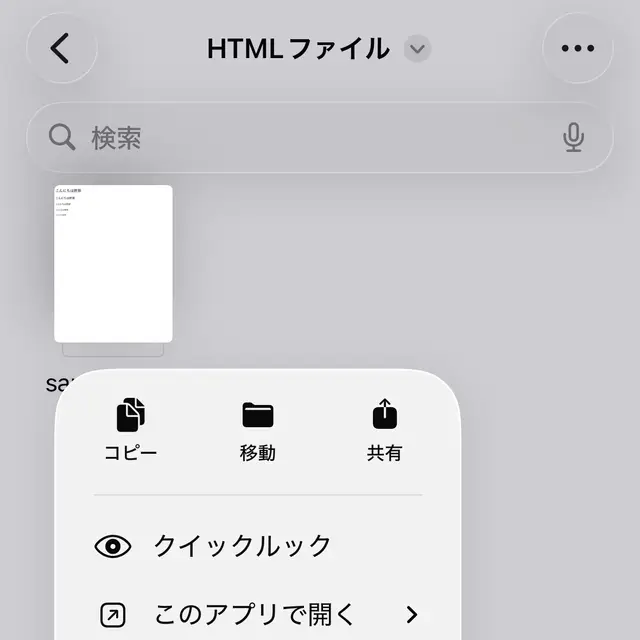 しかし、iPhoneのSafariはローカルのHTMLファイルを開く手段が用意されていないようで、代わりにファイルアプリで表示することができます。