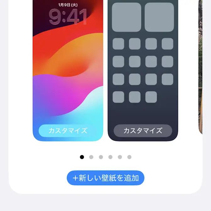 - 新しい壁紙を追加すると言う操作で行うため、ロック画面にはデフォルトの壁紙が残っているハズです。