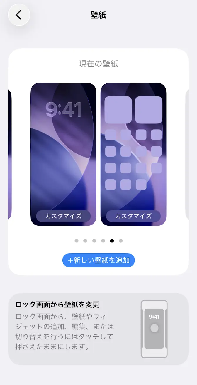 iPhoneの壁紙は、ホーム画面とロック画面を、別々に選択することもできます。