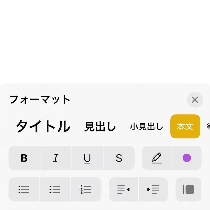 文字の太さやサイズの違いはフォーマットの違いによるもので、デフォルトでは自動で1行目にタイトルのフォーマットが適用され2行目以降は本文のフォーマットが適用されます。