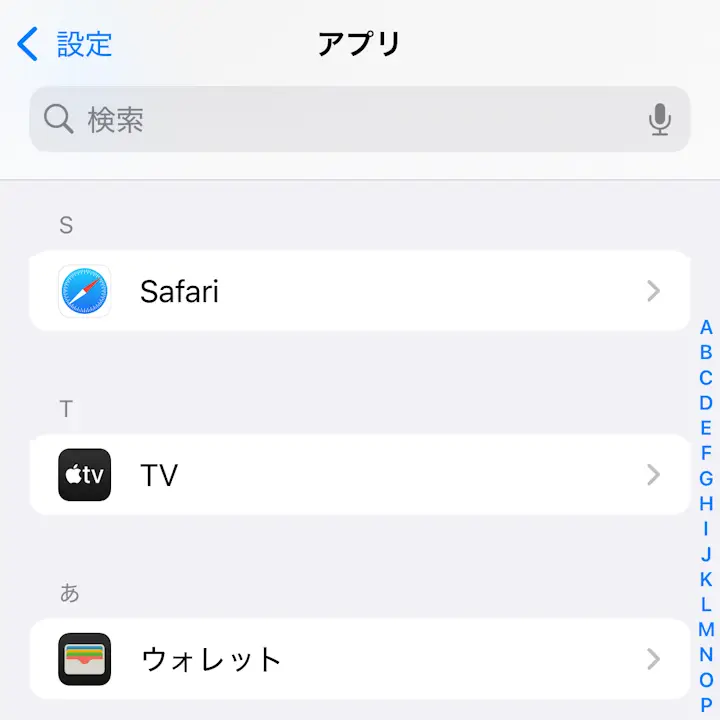 設定のアプリよりSafariをタップします。