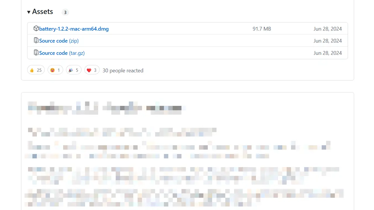 WebブラウザよりBatteryにアクセスしReleasesよりbattery-1.2.2-mac-arm64.dmgをダウンロードします。