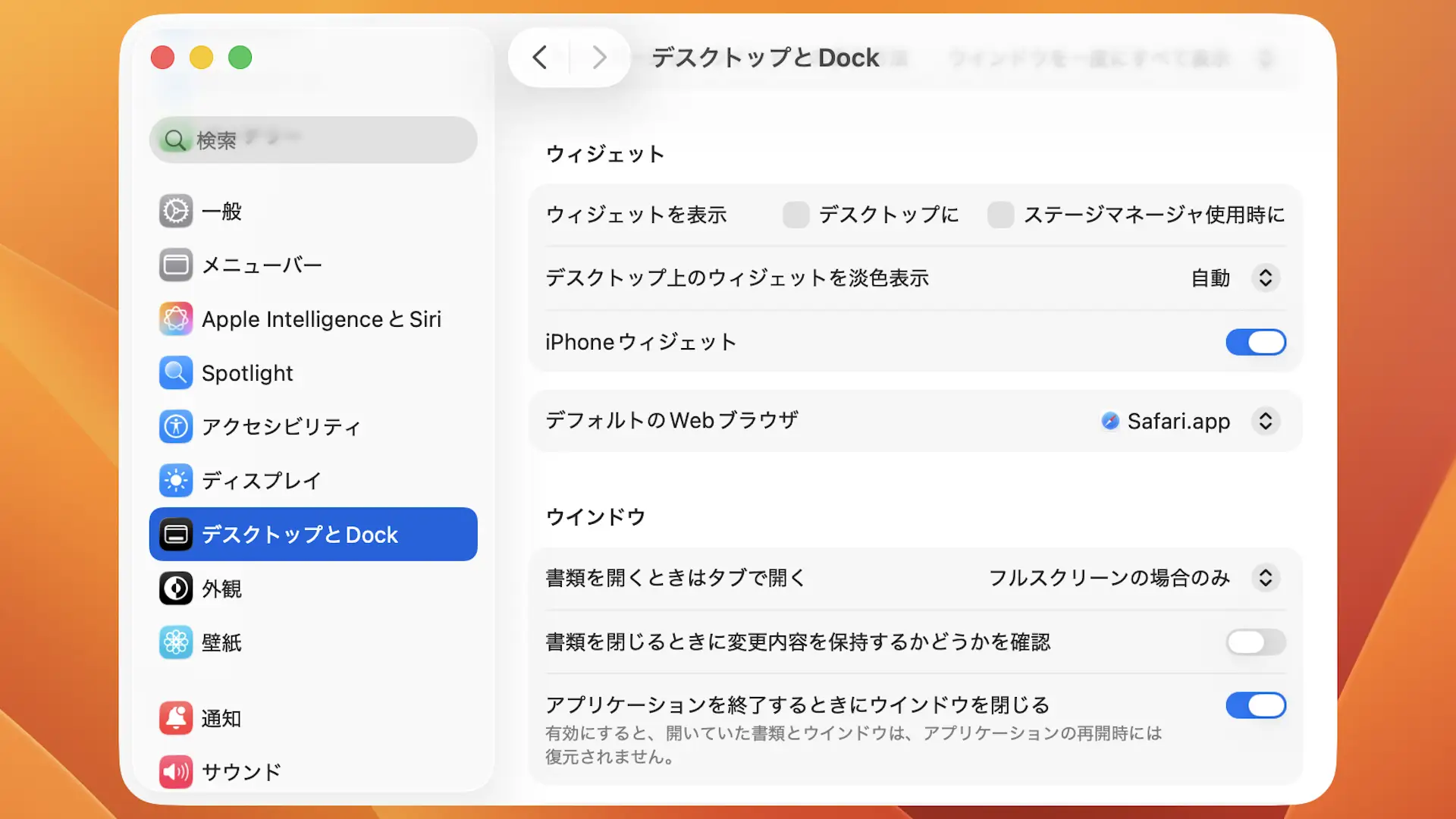 macOS 26にアップデートしたMacBook Airでは、デスクトップに【ウィジェット】が表示されるようになりましたが、設定でオフに切り替えることができるので、必要なければ非表示にできます。