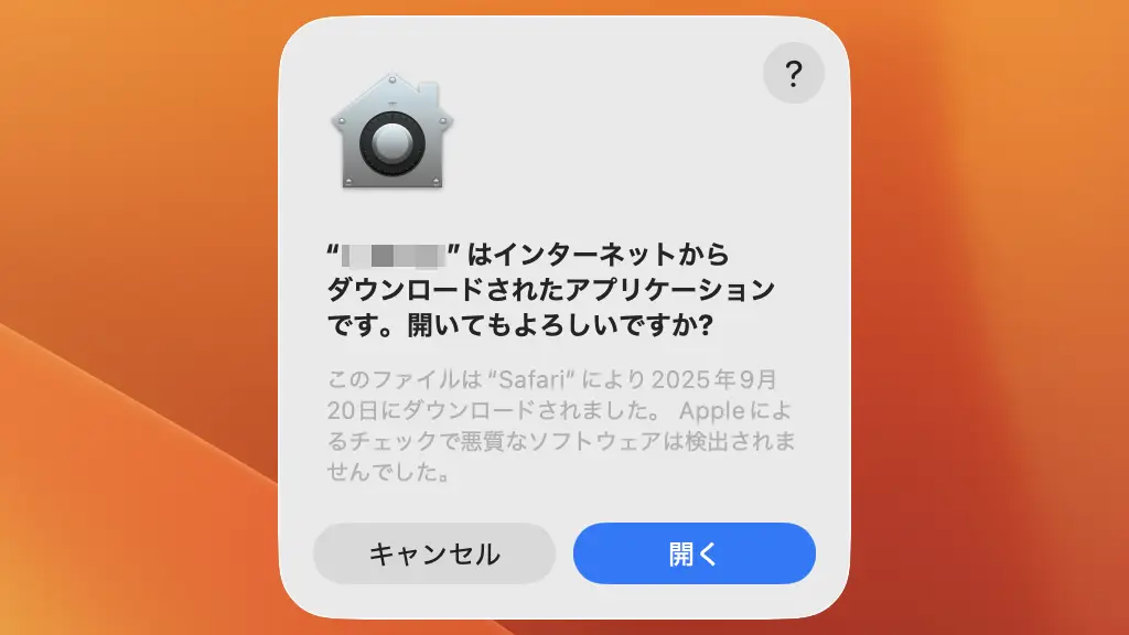 また、実行して“〇〇”はインターネットからダウンロードされたアプリケーションです。開いてもよろしいですか?とダイアログが表示された場合、内容をよく確認して問題なければ開くをクリックすると起動します。