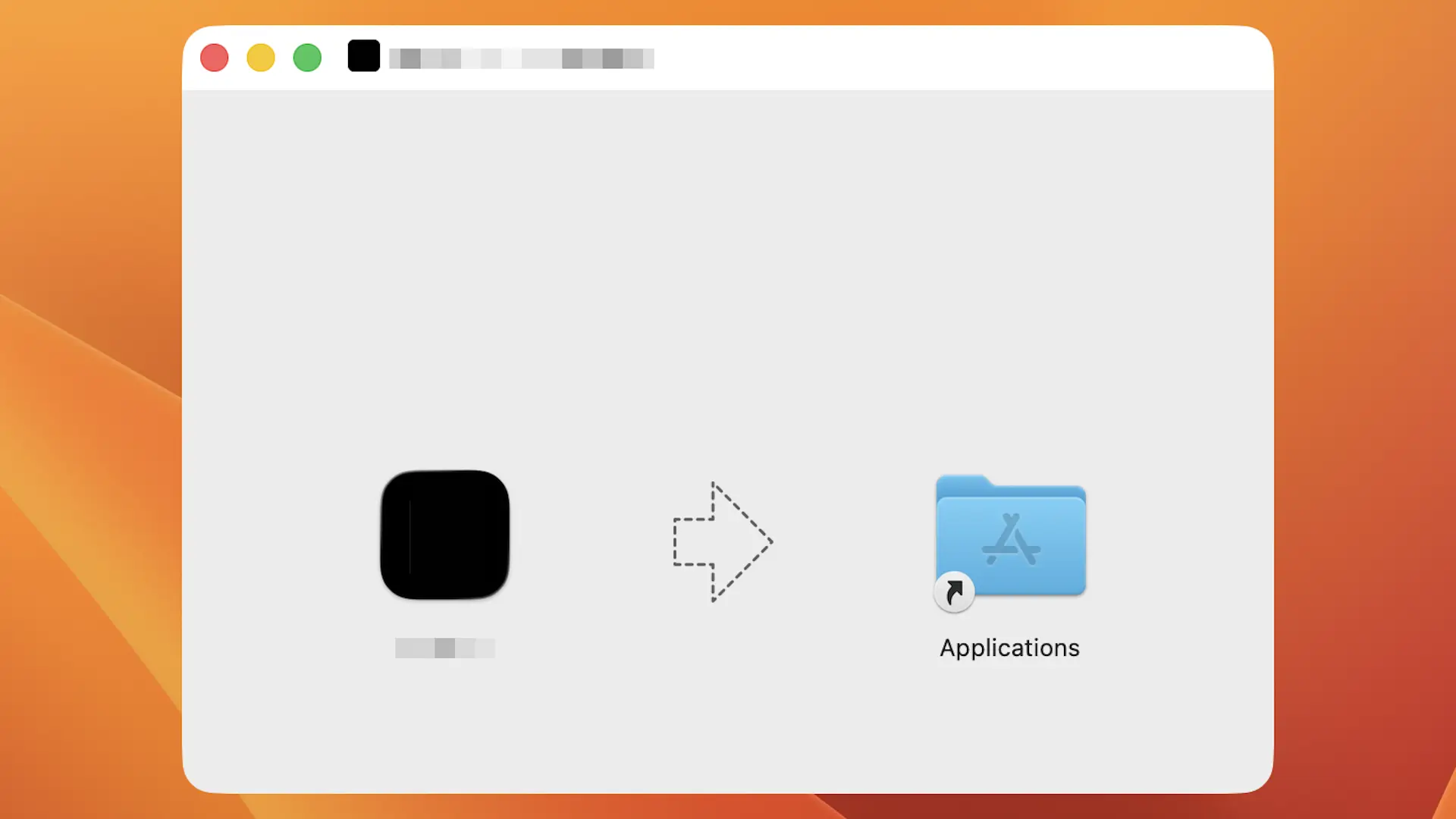 ウィンドウよりアプリアイコンをクリックしたままApplicationsフォルダへ移動しクリックを離します。
