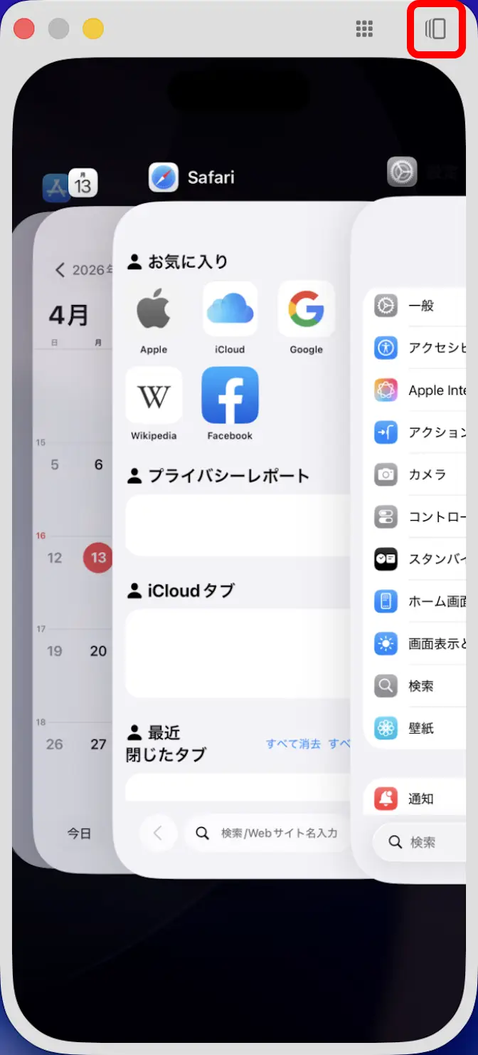 画面は横のゲームなどを除き原則として縦で表示されます。これはiPhoneの状態を問わないので「iPhoneでスタンバイモードを使う」かつ「MacでiPhoneミラーリングを使う」と言うこともできます。タップやスワイプなどの操作はトラックパッドやマウスを使ってクリックドラッグなどで行います。