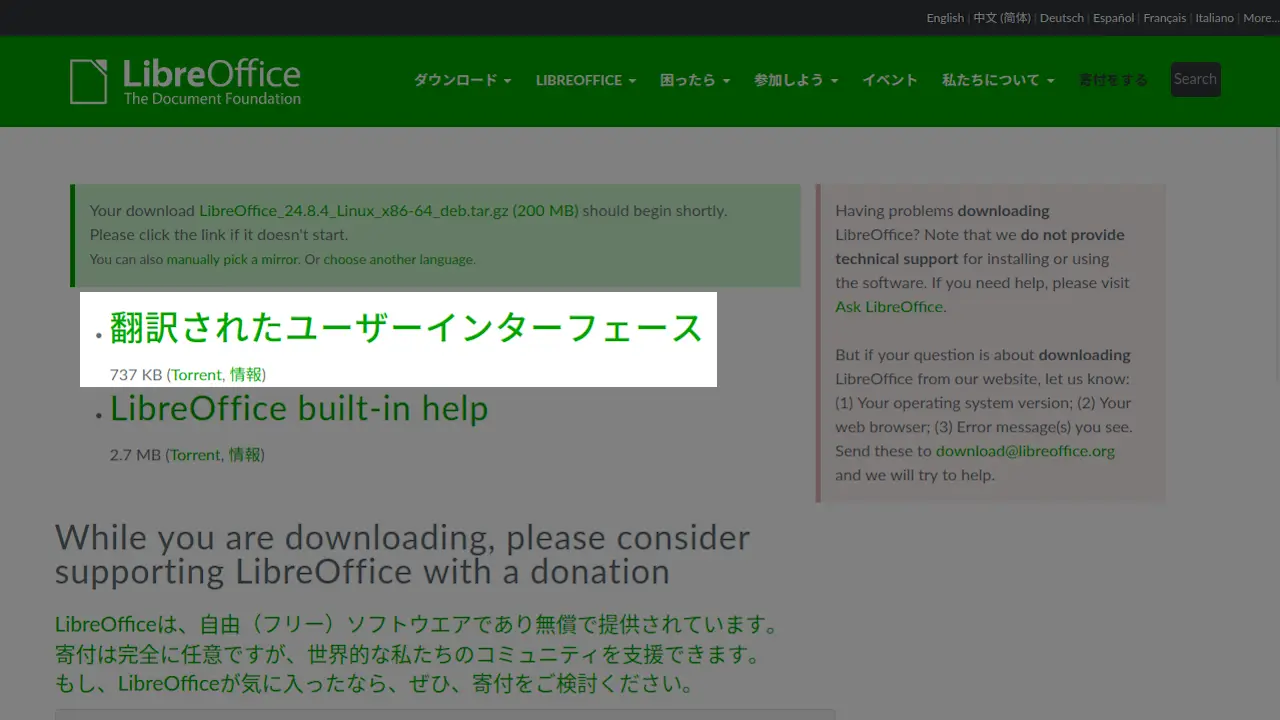 日本語化が必要であれば翻訳されたユーザーインターフェースをクリックしてダウンロードします。