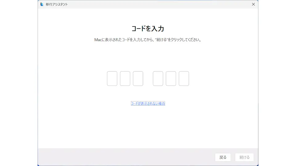 2. コードを入力より[Macの画面に表示されたコード]を入力し【続ける】をクリックします。