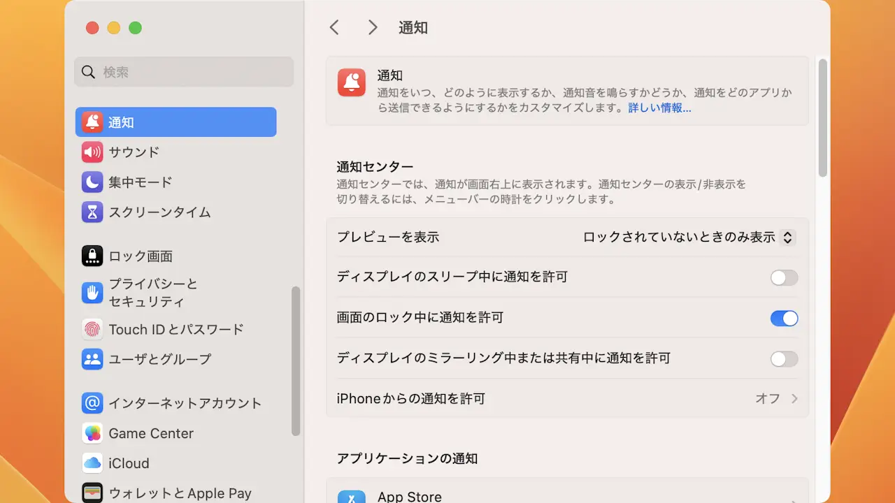 アプリ毎にオン/オフを切り替えるのは、iPhoneの設定やMacのシステム設定から可能ですが、すべての通知をオフにするにはMacのシステム設定から操作します。